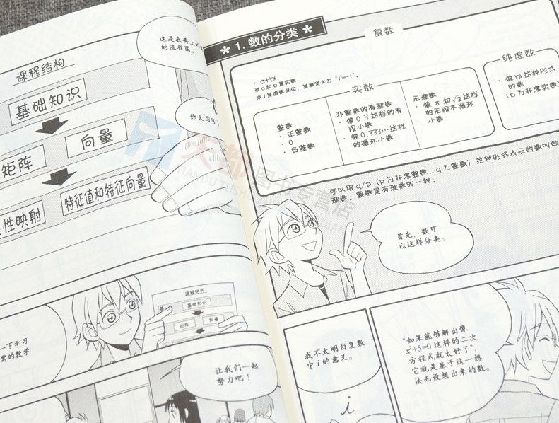 在漫画每一册中,读者会追随几位漫画角色一同学习一个学科的基础知识。漫画的主人公往往被设定成一个或多个刚开始学习(或因为挂科需要补习)某学科的学生,在一个向导类的角色(老师/优等生同学/学长学姐)的带领下,以学习小组的形式讲述知识。